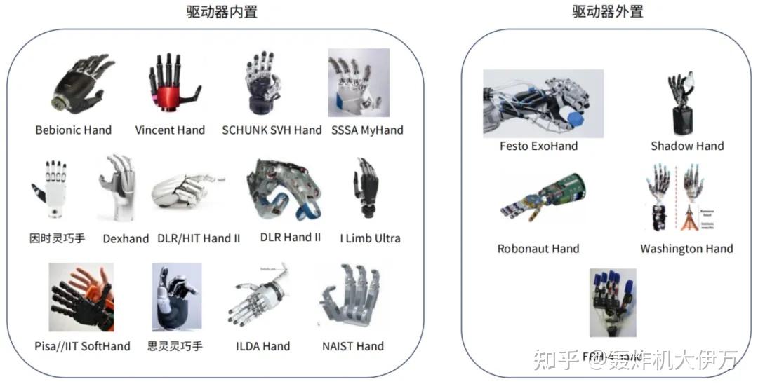 按结构形式,灵巧手可分为驱动器外置式、驱动器内置式与驱动器混合置式。