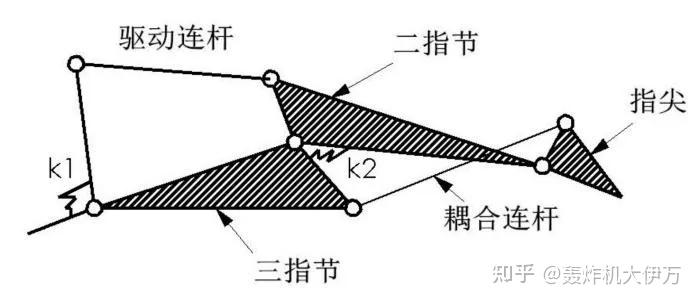 连杆传动手指示意图来源:严玺《仿人灵巧手的结构设计及其控制研究》